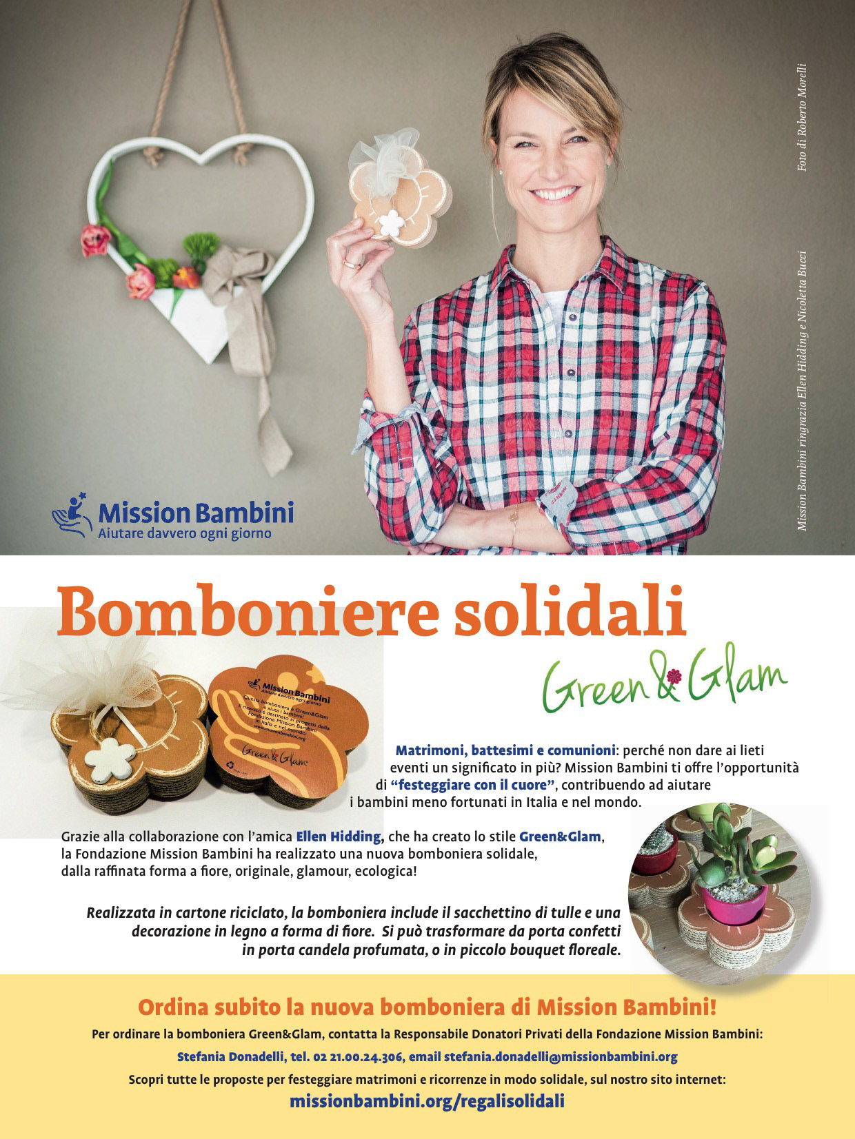 Shooting con Ellen Hidding, testimonial per la fondazione Mission Bambini, per la promozione delle bomboniere solidali Green&Glam
